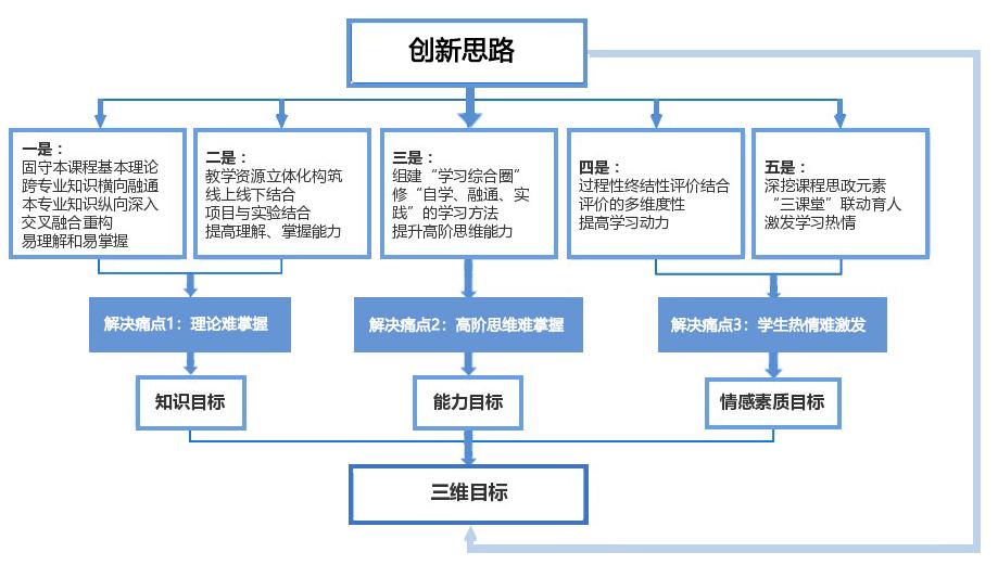 基于学校大土建学科专业齐全优势,围绕专业知识、能力、素质教育,培养学生综合性高阶设计思维,坚持“新文科”建设为指导,学生为中心,以科研结果为导向,固守本专业基本理论,跨专业知识横向融通,交叉融合重构教学内容,从而引入“学科前沿”和“工程项目实际”案例,进而增加课程内容的实践性设计;教学资源的多元立体化构筑,以本专业知识纵向深入为视角,通过线上线下结合、实践项目实施与课堂仿真实验相结合,提高学生对内容的掌握能力;三是合理运用现代技术手段,以进行跨专业知识横向融通为视角,组建“学习综合圈”,带动深度思考;修“自学、融通、实践”的学习方法,提升综合性高阶思维能力;四是设置过程性评价和终结性评价结合评价体系,注重评价的维度、深度和广度,提高学习动力和热情;五是以社会热点问题深挖课程思政元素,不断更新思政内容,坚持课堂教学、平台实践及项目实践“三课堂”联动育人,激发学习热情。