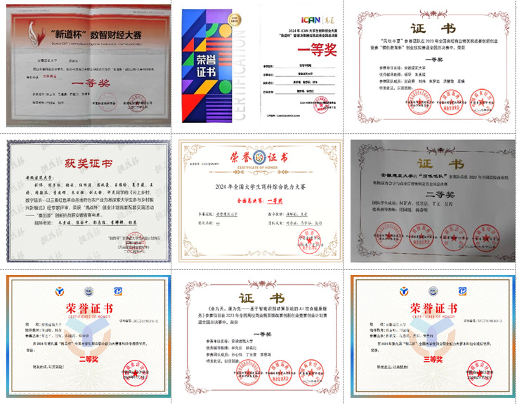 学校积极推行“以赛促学”教学模式,通过组织学生参加各类学科竞赛、创新创业大赛,激发学生学习热情,锻炼学生的实践能力,让学生在备赛过程中主动深化专业知识,培养创新思维和抗压能力,实现“学中赛、赛中学”的良性循环。近三年学生在挑战杯、全国管理决策模拟大赛、全国大学生商科综合能力大赛、财会能力大赛中屡获佳绩,三年共获得省级以上奖项57项目,其中国家级奖项18项,省级项目37项。在全国大学生创新创业训练计划项目中,近三年立项13项,其中国家级项目立项3项,省级项目立项10项。