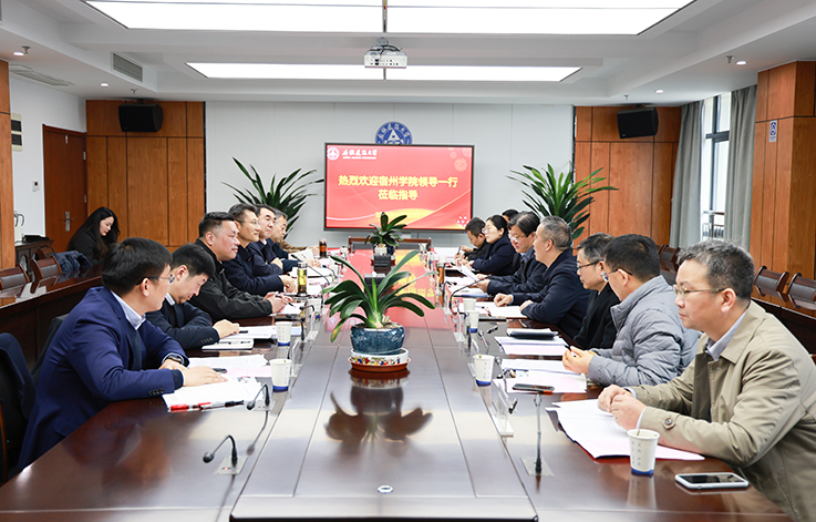 马文革对宿州学院一行表示欢迎。他表示,安徽建筑大学与宿州学院合作基础深厚、关系密切,希望双方聚焦高质量发展,充分发挥各自优势,在产学研融合、人才培养、科技创新、高层次人才引进等方面进一步深化合作,推动共同发展。