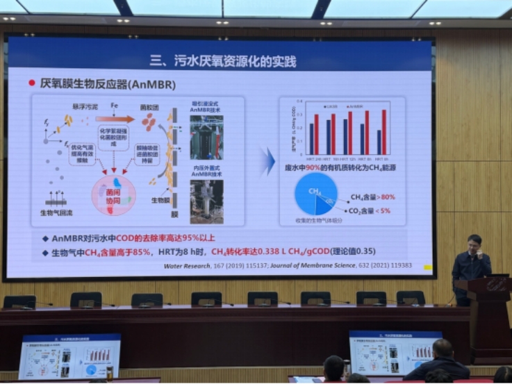 围绕“双碳”目标和资源循环利用需求,报告分享了团队在污水厌氧处理及能源、资源协同回收方面的最新研究与工程实践,重点从节能降碳、提质增效和高值资源回收等方面,阐述了污水处理向资源化、能源化转型的技术路径与实施模式,为城市水环境治理和资源高效利用提供了可复制、可推广的思路。