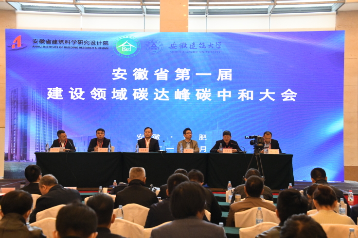 本网讯 10月20日,安徽省第一届建设领域碳达峰碳中和大会在合肥召开,本次大会由安徽建筑大学与安徽省建筑科学研究设计院、安徽省建筑节能与科技协会联合主办。智能建筑与建筑节能安徽省重点实验室主任方潜生、安徽省住房和城乡建设厅总工程师方廷勇、中国建筑科学研究院建筑环境与能源研究院院长徐伟、中国建筑节能协会副总工胥小龙、合肥市城乡建设局副局长祝磊、安徽省建筑科学研究设计院董事长项炳泉出席会议。校节能研究院、环能学院以及相关企业分管负责同志、行业专家200余人参加会议。