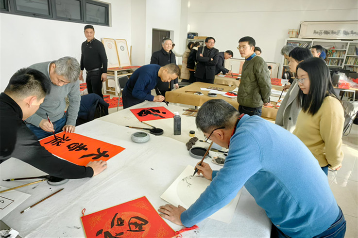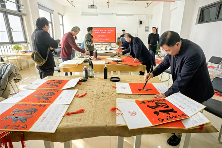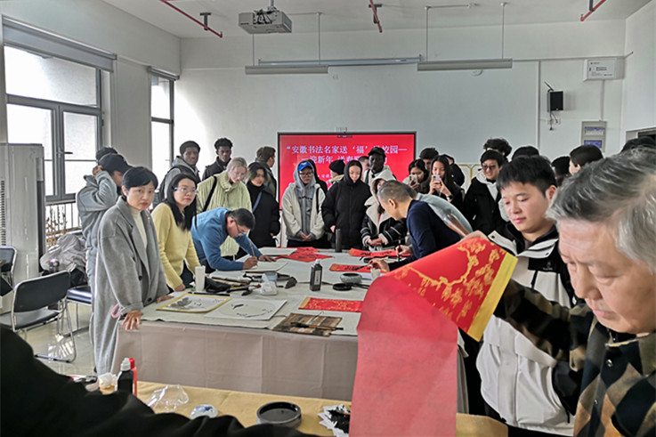本网讯 喜迎乙巳,墨舞华章。为弘扬“春节——中国人庆祝传统新年的社会实践”这一人类非物质文化遗产,展现中国书法艺术魅力,推动中华优秀传统文化进校园,1月8日,校工会联合艺术学院分工会、国际教育学院、安徽文艺评论创作基地暨文艺志愿服务点、安徽建筑大学“安徽省社会科学普及基地”,在紫云路校区艺术学院举办“安徽书法名家送‘福’进校园——迎新年 送春联”活动。