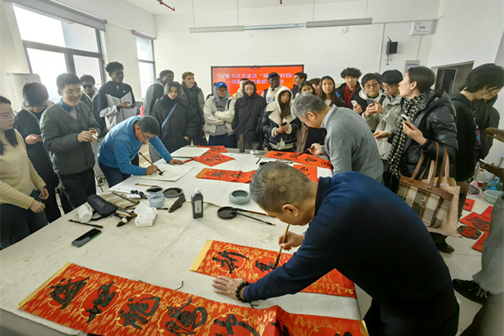 活动现场,书法家们泼墨挥毫,送上散发着浓浓墨香的大红春联,喜庆热烈,吉祥的“福”字熠熠生辉,让前来参加活动的师生感受到中国春节的浓浓年味,在场的海外留学生感受到了中国悠久的传统文化和学校深厚的文化底蕴,活动年味十足。