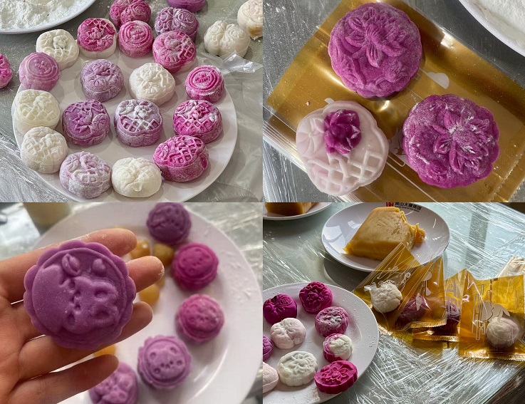 女教职工们齐聚教工餐厅,在黄山大厦面点师的指导下,揉面、包馅、压模,每一步都认真细致。经过一番努力,一个个晶莹剔透、形状各异的冰皮月饼呈现在大家眼前,活动现场不时传来欢声笑语,场面热闹温馨,整个餐厅洋溢着和谐、幸福和温暖。