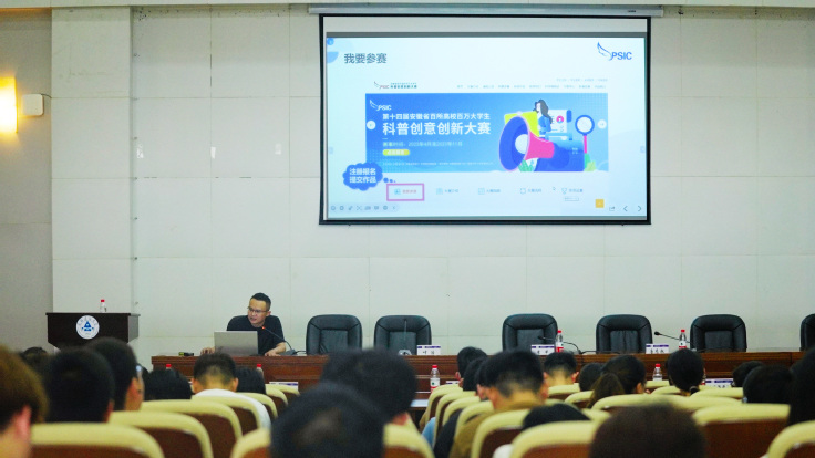 本网讯 9月12日,安徽建筑大学第十四届大学生科普创意创新大赛启动会在南校区图书馆报告厅召开。校党委常委、副校长李早,各学院党委副书记及师生代表参与启动会,启动会特邀安徽省科协专家叶浩担任宣讲嘉宾。会议由校团委书记唐志敏主持。
