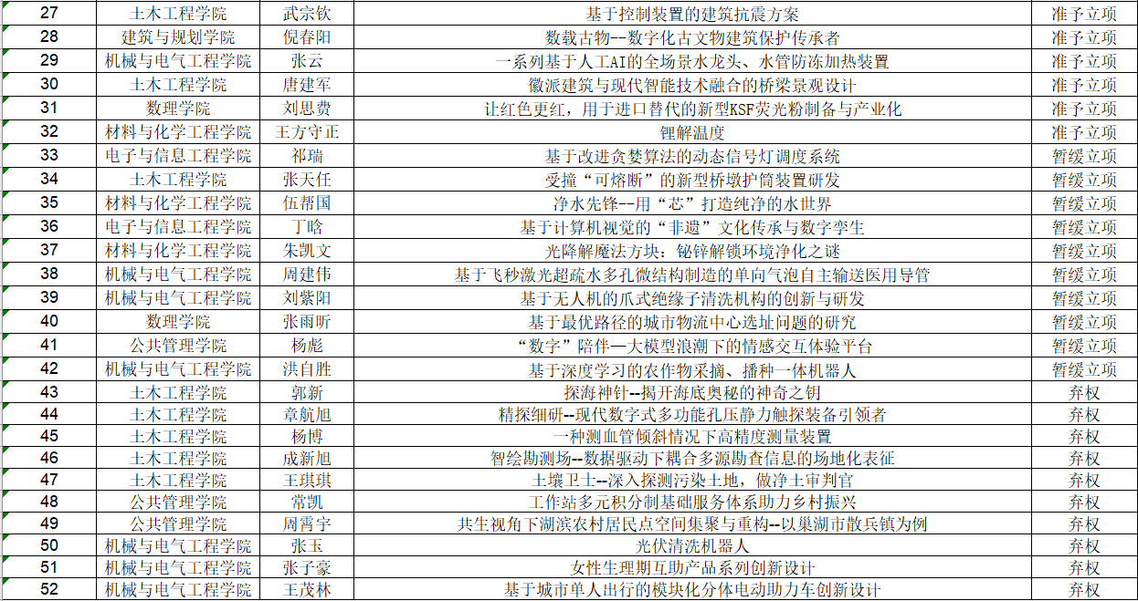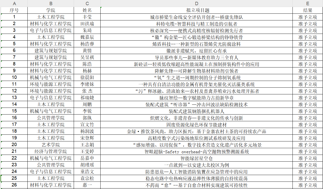 为积极推动2024年“挑战杯”竞赛作品遴选和培育优秀作品,根据文件精神,经团队自主申请、校外专家“一对一”专项答辩模式辅导、专家综合评议,最终确定立项入营团队,现将结果给予公示,公示期为3天,具体信息如下: