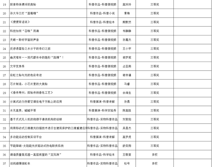 根据《关于举办第十五届安徽省百所高校百万大学生科普创意创新大赛的通知》相关文件要求,经前期动员宣传、学院推荐、专家评审等环节,现将本次大赛获奖予以公示:6项作品获一等奖、12项作品获二等奖,17项作品获三等奖,机械与电气工程学院、电子与信息工程学院、艺术学院获评优秀组织单位。