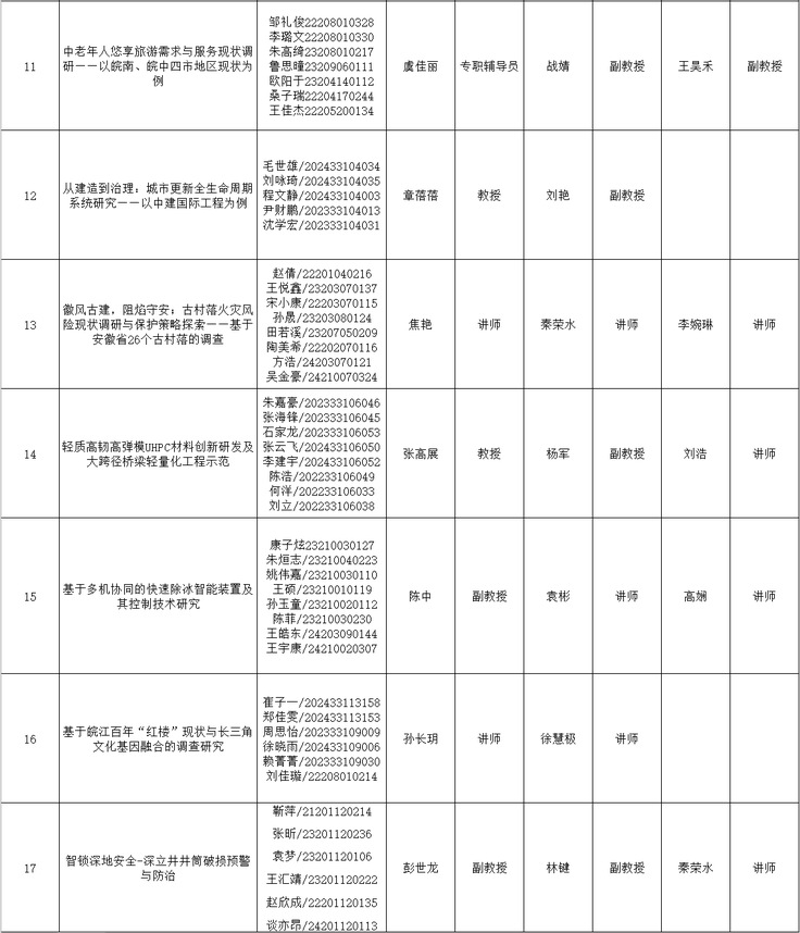 根据《关于举办安徽建筑大学第十一届“挑战杯”大学生课外学术科技作品竞赛的通知》相关文件要求,经前期动员、学院推荐、专家评审等环节,拟推荐17组项目参加省赛,现予以公示。