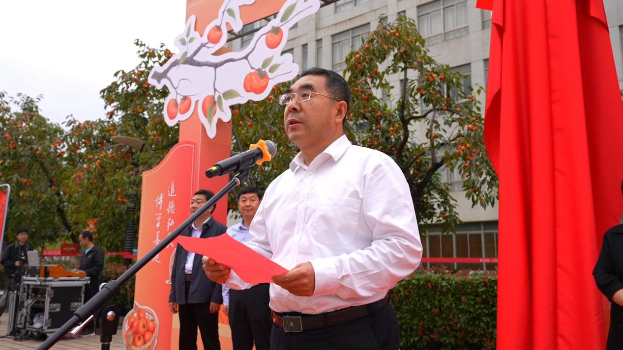 开幕式上,蔡国军发表了热情洋溢的致辞并宣布首届柿子文化活动月开幕。他指出,柿子有吉祥如意的象征,举办“柿柿”如意柿子文化活动月是学校深化“五育并举”、丰富校园文化内涵的重要实践,希望广大师生以柿子为媒,在劳动中体悟价值,在文化中滋养心灵,让“小柿子”承载“大教育”,并以本次文化节为契机,充分发掘校园特色资源,打造富有建大特色的校园文化IP。