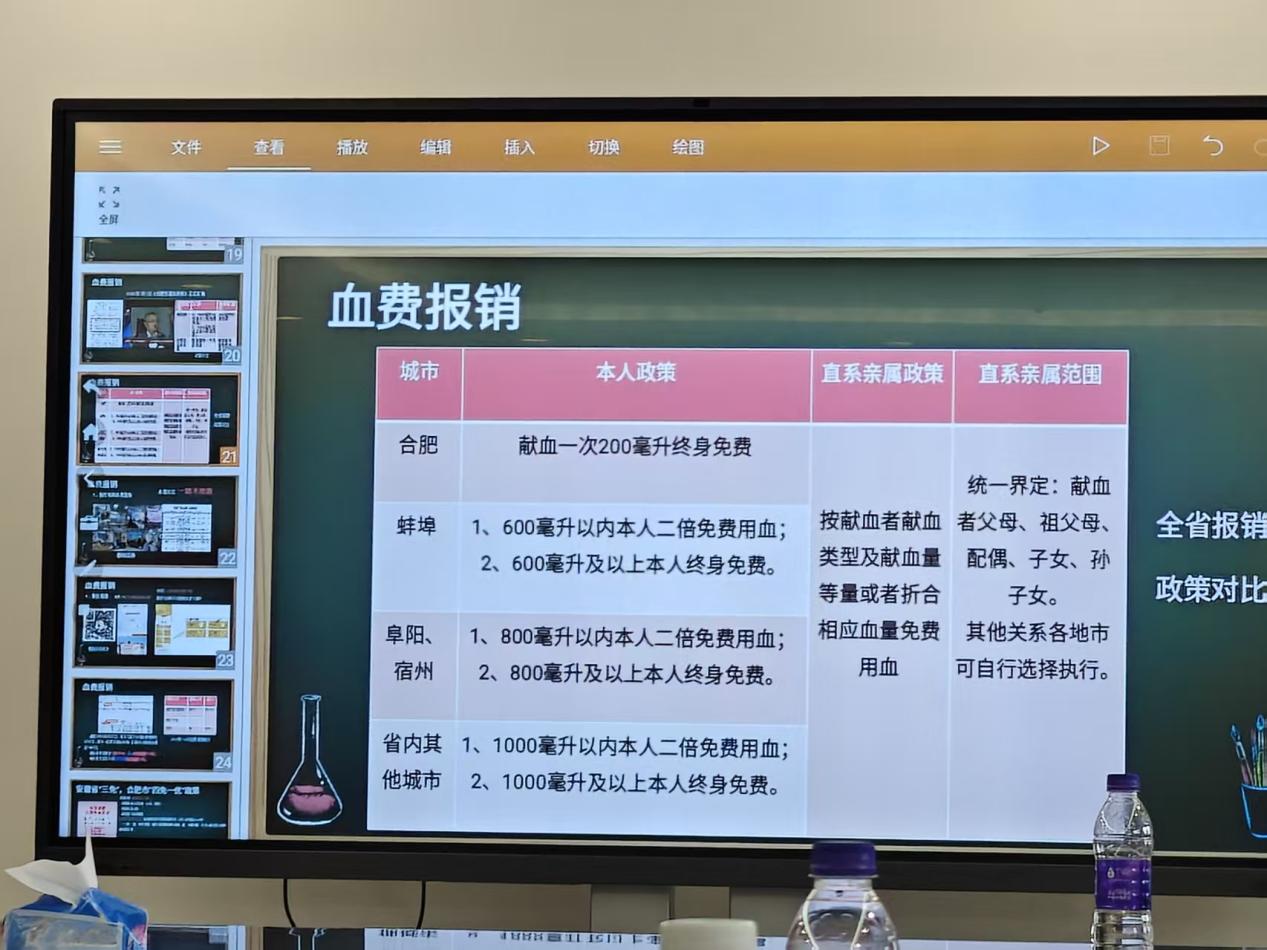 会议伊始,合肥市中心血站的工作人员以在场献血者的数量为切入点,通过电脑展示,生动地讲述了献血的重要性。工作人员强调,献血不仅能拯救生命,对献血者自身健康也并无不良影响。尤其对于大学生而言,作息相对单一,血液质量较高,更适合参与献血活动。此外,工作人员还特别介绍了合肥市对献血者的优待政策,根据《合肥市无偿献血荣誉证》相关规定,符合条件的献血者可享受免费乘坐地铁、公交车,免费游览公园,免交普通门诊诊察费等多项福利。同时,自2020年起,在合肥市捐献全血、血小板或造血干细胞一次以上的无偿献血者,其临床用血终身免交国家规定的血液采集、储存、分离、检验等临床用血费用。这些政策不仅是对献血者的感谢与回馈,更是鼓励更多人积极参与到献血事业中来。