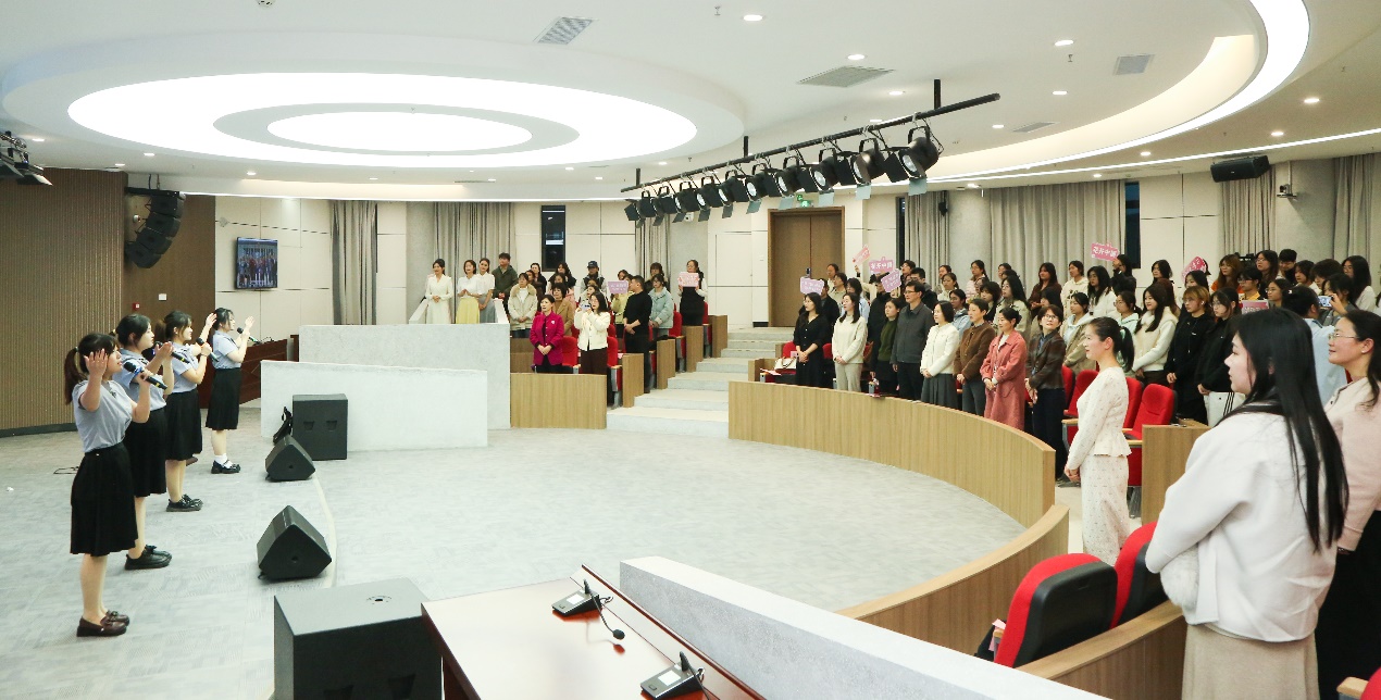 活动尾声,在我校学生代表的领唱下,全体人员共同传唱《花开中国》,悠扬的歌声中饱含着对女性力量的赞颂与对美好未来的憧憬。
