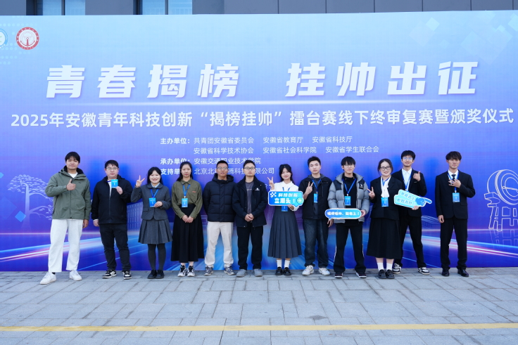 本网讯 近日,2025年度安徽青年科技创新“揭榜挂帅”擂台赛终审决赛圆满落幕。安徽建筑大学学子在新一代信息技术、高端装备与智能制造、社会科学等领域多点突破,共7项成果成功揭榜,其中倪春阳团队荣获一等奖及“擂主”称号,充分彰显学校“以赛促学、以赛促创”的育人成效。