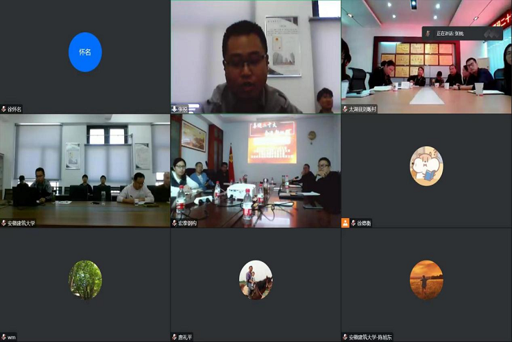 本网讯:10月13日下午,为迎接党的二十大、践行党支部结对共建协议内容,安徽省BIM工程中心党支部、土木学院建工系党支部联合太湖县刘畈村党总支部和安徽宏泰钢结构股份有限公司党支部开展“喜迎二十大,奋进新征程”主题党课活动。四个基层党支部的全体党员通过3个线下会场和腾讯会议等方式参加会议,会议由安徽省BIM工程中心党支部书记满大伟博士主持。
