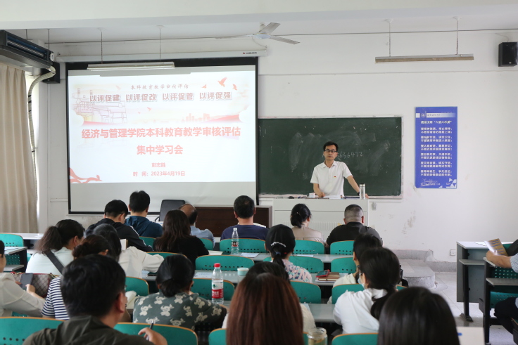本网讯 为积极迎接本科教育教学审核评估,4月19日,经管学院召开本科教育教学审核评估政策集中学习会。会议由学院院长彭志胜主持,学院全体教职工参加。