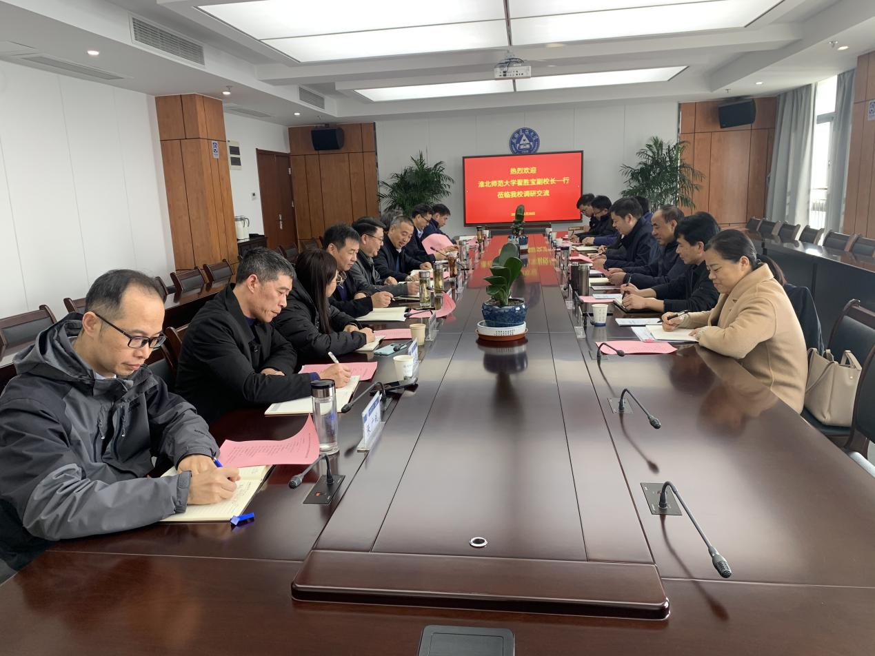 本网讯 11月28日,淮北师范大学党委常委、副校长翟胜宝一行9人来校调研交流。校党委常委、副校长闵杰,学生部、人事处、教务处、教师发展中心、信网中心、材料与化学工程学院、经济与管理学院等单位负责人参加会议,会议由闵杰主持。
