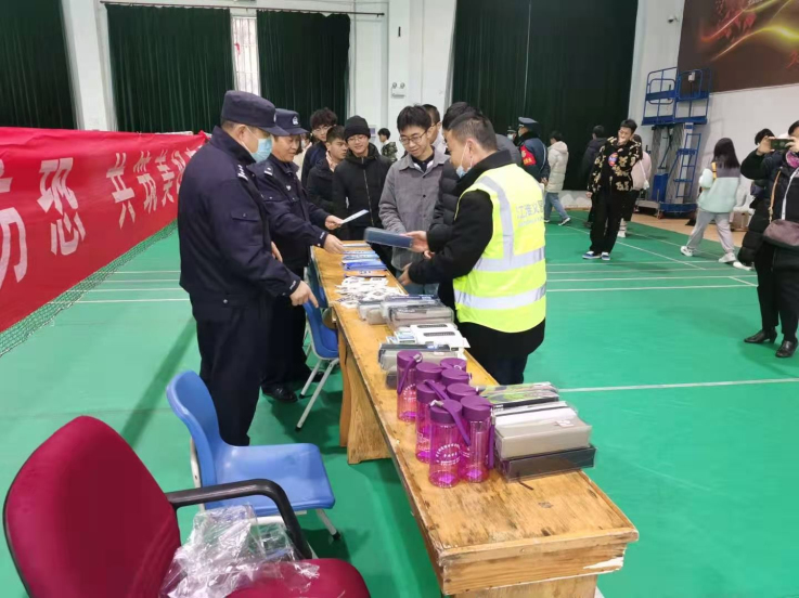 讲座中,公安民警以各种宣传展板为载体,带领保安和学生学习反恐知识,详细介绍恐怖活动的类型、紧急避险的方法以及日常防范的具体措施,同时呼吁学生向身边的同学朋友积极宣传反恐防暴的知识,活动现场公安民警向参加活动人员分发定制生活、学习用品。随后,公安民警又亲自向保安示范防暴工具的使用方法,介绍如何应对不同的恐怖袭击情况。
