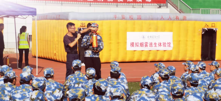 本网讯 2021年9月18日,保卫处组织2021级学生开展消防模拟演练和疏散逃生演练,校党委常委、副校长张亚新现场观摩指导。