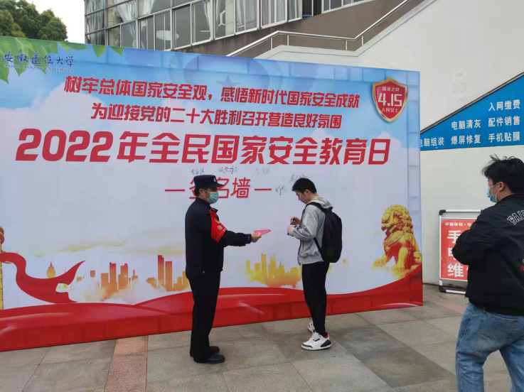 学校高度重视全民国家安全教育日普法宣传活动,紧扣“树牢总体国家安全观,感悟新时代国家安全成就,为迎接党的二十大胜利召开营造良好氛围”宣传主题,积极充分准备。校办公室、宣传部、保卫处联合组织学生积极参加“安徽建筑大学公众号”和“平安建大公众号”发布的“全民国家安全教育日有奖竞答”,观看“平安建大公众号”转载的由安徽省公安厅、合肥市公安局联合出品的“4.15全民国家安全教育日VR全景沉浸式游览”,动员学生在“4.15”当天在南北校区积极参加保密教育和国家安全教育签名宣传活动;充分发挥“两微一端”的宣传引导作用,营造良好的全民国家安全教育日普法宣传氛围,在校园内悬挂国家安全教育日宣传横幅,电子屏滚动播放《共筑保密防线 保密人人有责》4.15保密公益宣传片;在校园网主页发布第七个国家安全教育日轮播图,开设“国家安全日”专栏,及时推送系列活动报道;利用新媒体平台积极参与中国大学生在线微博、抖音等话题互动;官方微博在“小海今日说”栏目中发起话题互动并推文;官方抖音号推送1期《速来学习!第七个全民国家安全教育日主题展览》短视频。