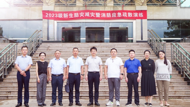 本网讯 9月13日下午,学校军训工作领导小组成员单位组织南校区2023级新生开展疏散逃生演练,校党委常委、副校长张亚新亲临现场指导。