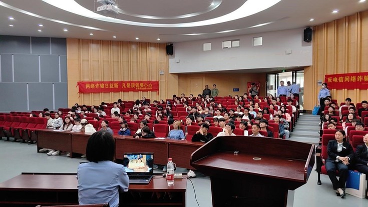 校园安全无小事,反诈工作不停歇。本次防范电信诈骗教育活动由常青派出所邀请包河反诈中心进行现场警示宣讲。包河反诈中心工作人员从“为什么被骗?”开始,引发学生对于电信诈骗的思考和重视。