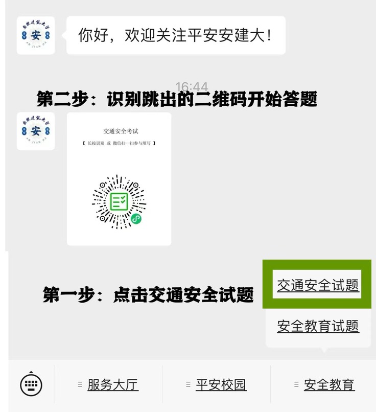 为营造师生员工学习关注交通安全,学校通过设置展板、条幅、微信公众号答题等线上线下结合的方式引导师生自觉提高交通安全素养。