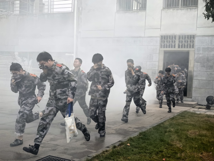 此次演练以发生火灾为场景,模拟火灾发生时的紧急情况。一声哨响,工作人员迅速进入角色,立即启动紧急疏散程序,根据预设的疏散路线,按照顺序下楼,同时全程保障学生安全。各层楼教官和工作人员密切配合,确保疏散过程顺利进行,保证学生按照规定路线有序地撤离到安全区域。