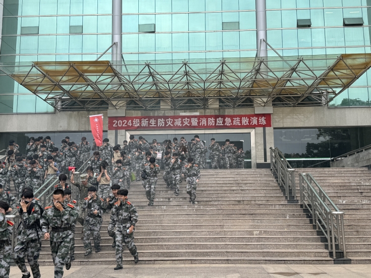 本网讯 9月11日下午,学校军训工作领导小组成员单位组织2024级新生在紫云路校区和金寨路校区同步开展疏散逃生演练,演练过程中采取规范引导和有序疏散的方式,确保学生的安全撤离。