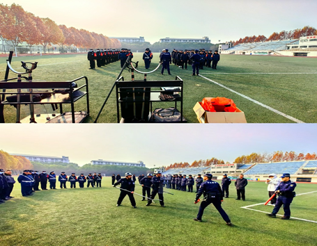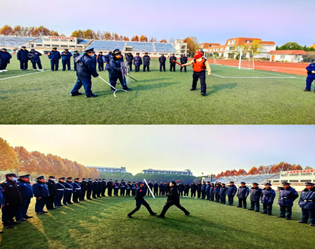 本网讯 为进一步提升学校安保应急反应能力和防暴处突技能,学校保卫处积极参与锦绣片区高校安保人员联合防暴演练,此次演练有7所高校安保人员参与,由经开公安分局王华林、许嘉国教官指导任教。