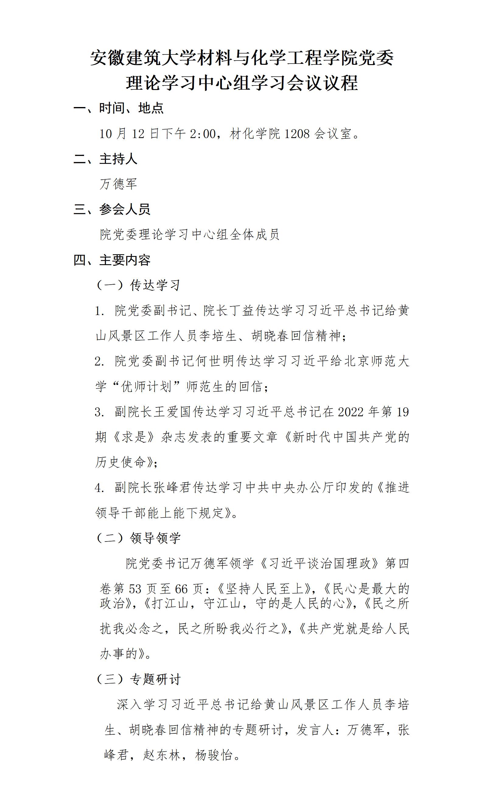 安徽建筑大学材料与化学工程学院党委 理论学习中心组学习会议议程