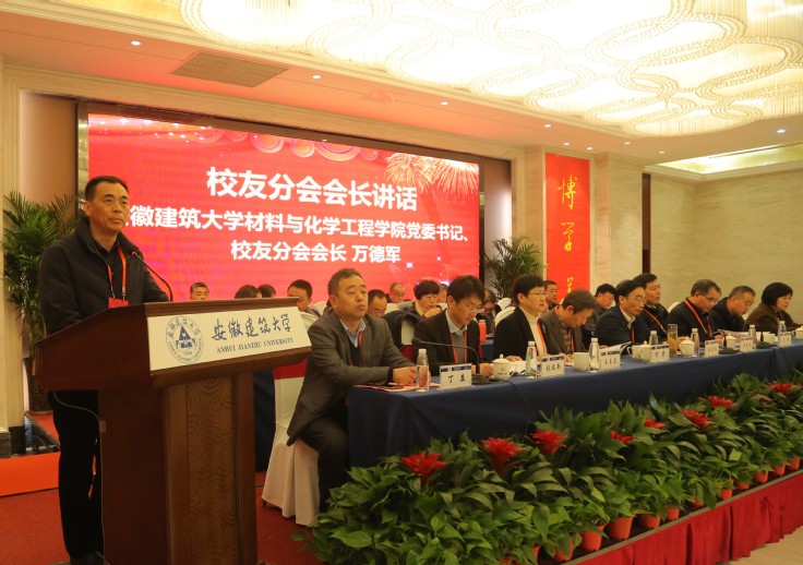 【本网讯】 为喜迎安徽建筑大学六十五周年校庆,进一步增进校友联系,在学校领导、学校校友总会和学院历任领导的关心和支持下,安徽建筑大学材料与化学工程学院校友分会成立大会暨第一次会员代表大会于2月12日在合肥隆重召开,来自北京、上海、重庆、西藏等地的68名校友齐聚一堂,共话建大缘、畅叙校园情。安徽建筑大学党委书记孙道胜,校党委副书记、校长黄显怀,校党委常委、纪委书记、监察专员王玉兰,校党委常委、副校长闵杰,校党委常委、副校长张亚新,校党委常委、副校长李早,安徽城市管理职业学院院长刘瑾,学校教育发展基金会理事长宋箭,校友工作处领导以及学院历任领导应邀出席会议。会议由材料与化学工程学院党委副书记、院长丁益主持。