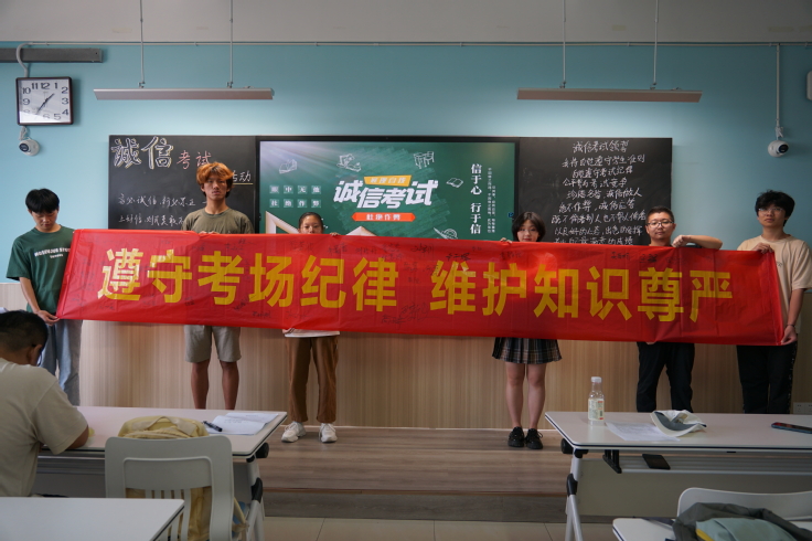 活动中,材化学院各班级共同学习了《安徽建筑大学学生手册》和《安徽建筑大学考试管理规定》等相关文件,通过解读“国考作弊入刑”、“校考作弊处分”相关条款、发出“诚信考试光荣,违纪作弊可耻”的倡议,引导同学们加强对诚信考试重要性的认识、树立诚实守信的行为习惯,鼓励同学们在各项考试中努力复习、认真备考,尽全力考出自己的真实水平。各班级以“签订一份诚信考试承诺书”、“组织一次诚信考试宣誓会”、“在诚信考试横幅签名”等形式为载体,进行广泛宣传,提高学生自觉维护考风考纪,养成遵守考试纪律的意识。