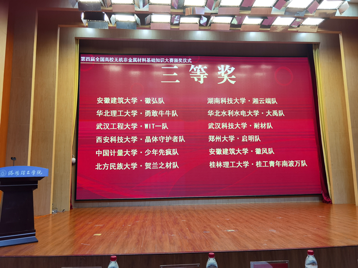 大赛期间,带队教师参加了由教育部材料类专业教学指导委员会主办、洛阳理工学院承办的全国无机非金属材料工程专业课程教学研讨会,对提高我校无机非金属材料工程专业的办学质量,促进无机非金属材料专业的学科建设具有重要意义。(文/图:杨军、李萍;审核:万德军)