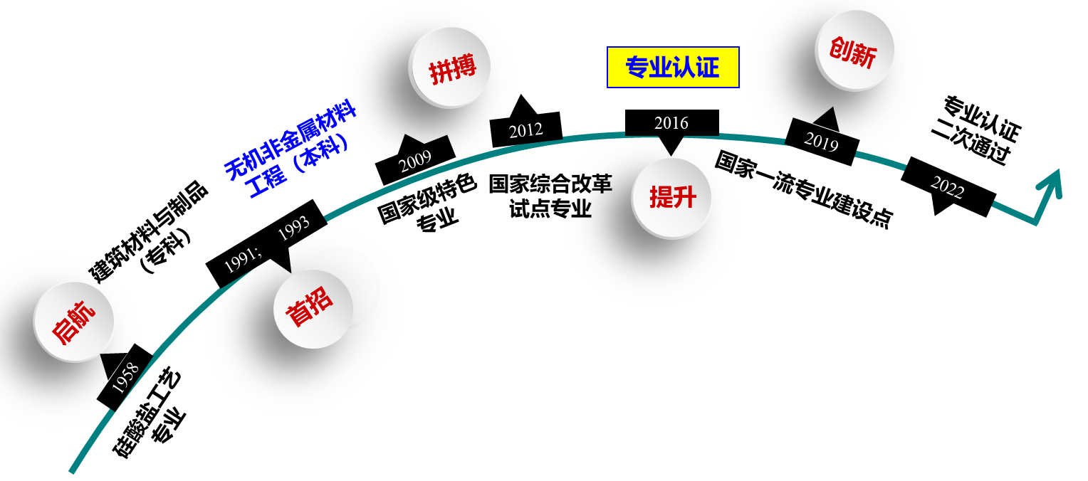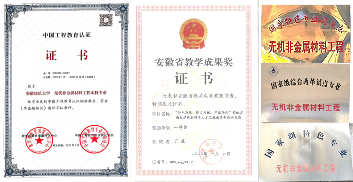 无机非金属材料是我国国民经济发展的重要基础原材料工业,是改善民生的基础性产业,也是支撑国防、航天航空以及节能环保、新能源、新材料、信息产业等战略性新兴产业发展的重要产业。传统的无机非金属材料工业的升级改造及新型功能性无机非金属材料开发是我国材料领域的热点和关键。无机非金属材料工程是一门涉及化学、物理、材料科学和工程等多领域的交叉学科,主要研究以无机非金属材料为主体的各类材料的理论基础和应用领域。安徽建筑大学无机非金属材料工程专业隶属于材料科学与工程一级学科,前身为1958年建校时设立的硅酸盐专业,1959年招收首届学生。1991年更名为建筑材料与制品专业(专科);1993年更名为无机非金属材料工程专业(本科);2008年、2009年分别获批为省级特色建设专业和国家级特色专业;2011年成为省级人才培养模式创新试验区; 2012年被列为国家级专业综合改革试点专业。2016年首次通过国家教育部工程教育专业认证;2017年被列为安徽省特色(品牌)专业,2019年获批国家一流专业;2022年通过国家教育部工程教育专业认证复评。