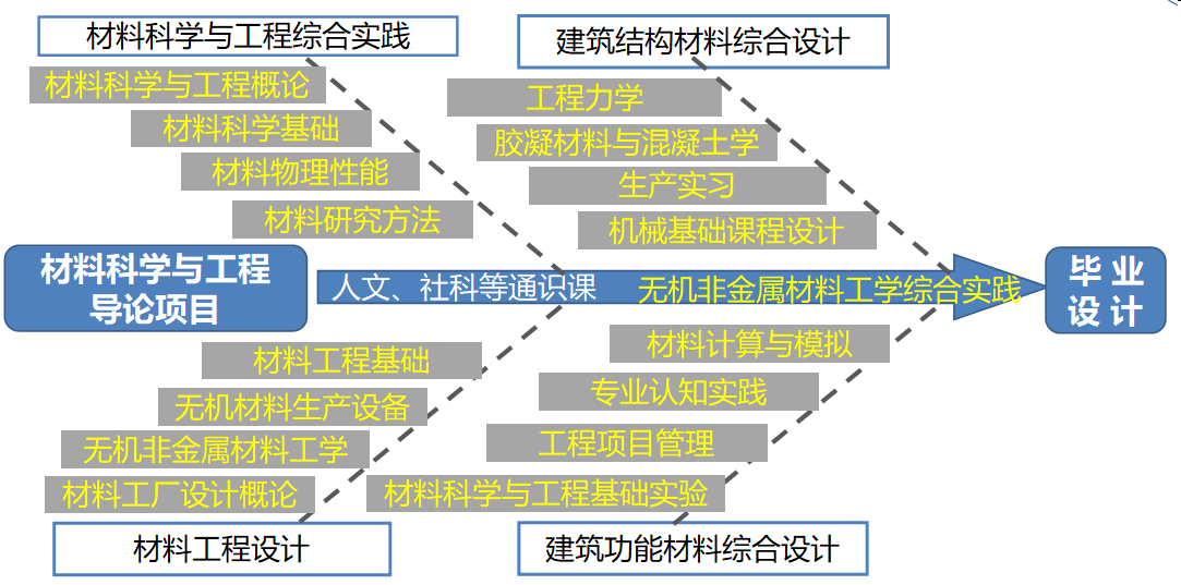 专业围绕学校打好“建”字牌,做好“徽”文章的特色发展之路,依托“大土木”学科优势开展教学研究,服务地方经济发展。培养具有无机非金属材料与工程方面的知识,能从事传统无机非金属材料和新型无机非金属材料的研究、开发、工艺过程设计与生产过程管理等方面工作的高级工程技术人才。经过几十年的发展,安徽建筑大学无机非金属材料工程专业形成了以高性能水泥基材料为特色,能源存储与转化材料,环境功能材料、电子功能材料等多方向综合发展的专业。现有材料科学与工程一级学科和土木与水利二级学科硕士学位授权点,以及土木工程一级学科下建筑材料的博士培养方向,形成“本-硕-博”一站式培养模式。