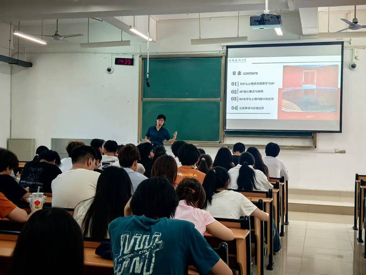 讲座中,吉老师以生动案例和互动练习,深入浅出地讲解了认知行为疗法(CBT)的核心原理与应用技巧。CBT作为一种证实有效的心理干预方法,通过帮助个体识别并调整消极思维模式,从而改善情绪和行为问题。吉老师结合学生常见的学业压力、人际焦虑等场景,演示了如何运用“思维记录表”“行为实验”等工具进行自我调节,并强调“想法≠事实”的CBT核心理念。