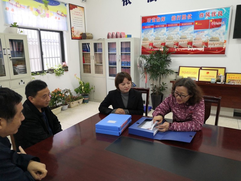机关第二党委书记陈雷、档案馆馆长许海燕等来到村部,实地调研档案管理状况,了解文书、基建、会计、声像、电子等不同类型、不同载体村级档案的建档、整理和检索情况,了解档案管理制度建立和执行情况,就村级档案管理,特别是支部党建、“三重一大”、乡村振兴等档案的收集、整理、保管、利用、展示等提出指导性意见建议。许海燕为进一步加强档案工作交流与合作,提出有关人员来校来馆调研考察的邀请。