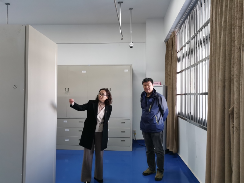 讲座结束后,刘明实地考察了档案库房、调阅室、整理室、办公室等场所,继续就档案馆库安全、设施设备安全、档案实体安全等多个细节分享经验、交流心得。