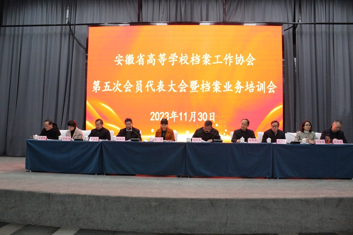 本网讯 11月29日至12月2日,安徽省高等学校档案工作协会第五次会员代表大会暨档案业务培训会在合肥召开,来自全省90多所高校190余名档案人员参加了会议。省教育厅副厅长徐静平、省档案馆副馆长胡华平、省委办公厅档案管理一处处长邱旻、中国高等教育学会档案工作分会理事长吴玫、协会第四届理事会成员出席大会开幕式。我校作为常务理事单位参会。