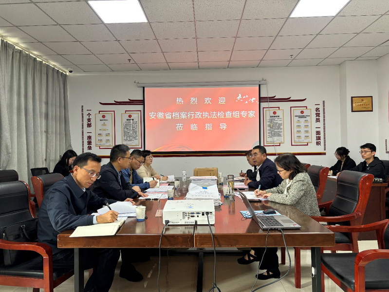 本网讯 11月14日,安徽省档案局来校开展档案行政执法检查。检查组由省档案馆整理编目处处长、一级调研员汪海峰带队。校党委常委、副校长蔡国军出席见面会。