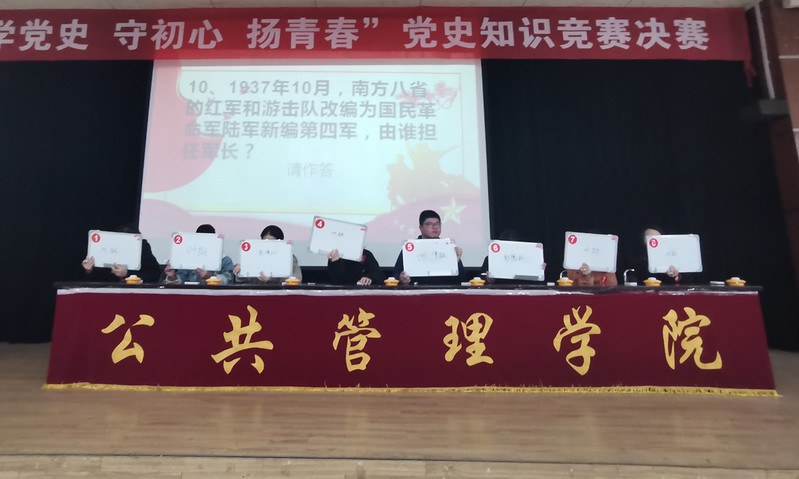 公共管理学院以党史知识竞赛的方式,回顾党的光辉历程,讴歌党的丰功伟绩,抒发对党的崇敬之情。本次活动的成功举办,加深了学生们对党的发展历史及理论知识的理解与掌握,丰富了公管学院的红色党团文化,增强了公管学子不忘初心,牢记使命的青年使命精神。(文/图:牛勤 王博;审稿:马晓艳)
