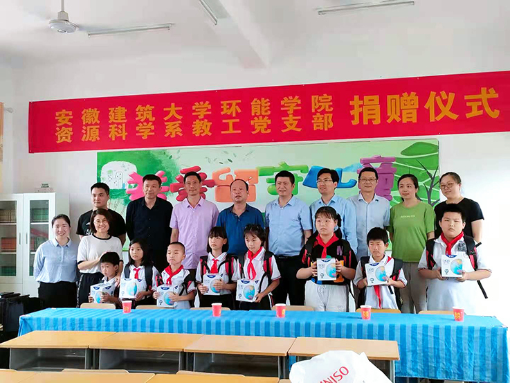 本网讯 为积极响应习近平总书记在党史学习教育动员大会上“我为群众办实事”的号召,6月17日,环境与能源工程学院资源科学系教工党支部9名党员在解华明副院长的带领下,来到枞阳县钱铺中心学校开展爱心捐资助学活动。
