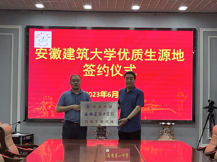 全力谋划抓落实,“精部署”“协议约”。为进一步发挥学校学科与人才培养优势,深化与省内重点生源中学的合作交流,实现“中学受益、考生受益、高校受益”。宣讲会前,孙长城与部分中学领导班子、教师代表进行了座谈,详细介绍了我校学科建设、师资队伍、近年来办学成果等,并表示诚挚欢迎更多优秀学子报考安徽建筑大学。此外,孙长城代表学校同涡阳一中、涡阳育萃中学签署《安徽建筑大学优质生源基地合作协议书》,并举行了“安徽建筑大学优秀生源基地”授牌仪式,双方均表示,将在今后的人才培养工作中展开更全面、更深入的合作。