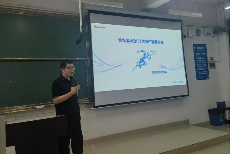 本网讯 2024年10月14日,第九届华为ICT大赛安徽建筑大学专场路演活动在逸夫楼5202举行,活动由电信学院与华为技术有限公司、安徽慧桥教育咨询有限公司三方联合举办,旨在为广大师生提供一个深入参与华为ICT大赛的平台,提升师生的ICT知识水平,动员我校与华为合作专业的学生积极参赛,促进学生技术实践能力的提升和运用新技术、新平台的创新能力。活动由华为培训授权单位安徽慧桥教育咨询有限公司韩伟领衔主讲作主题宣讲,现场共吸引了一百多名学生到场参加。