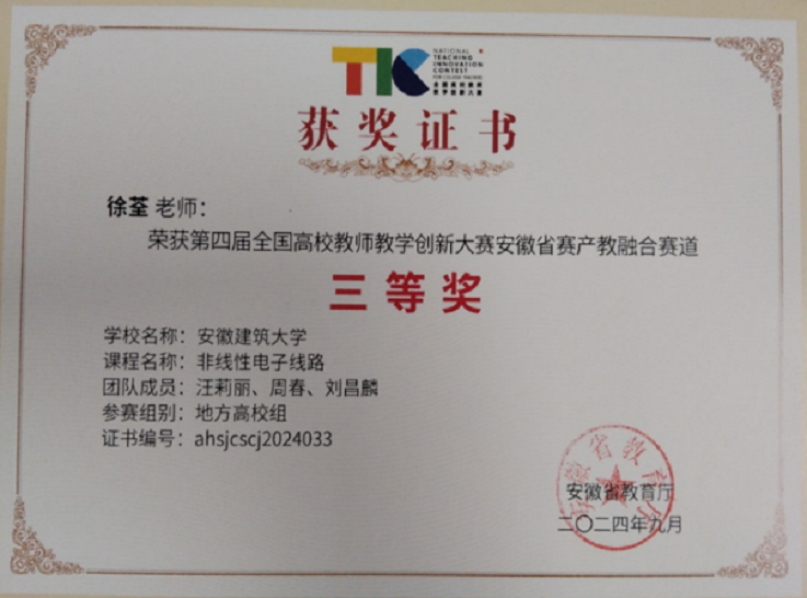 本网讯 近日,第四届全国教师教学创新大赛圆满结束。电信学院教师荣获安徽省赛二等奖、三等奖各1项的好成绩。