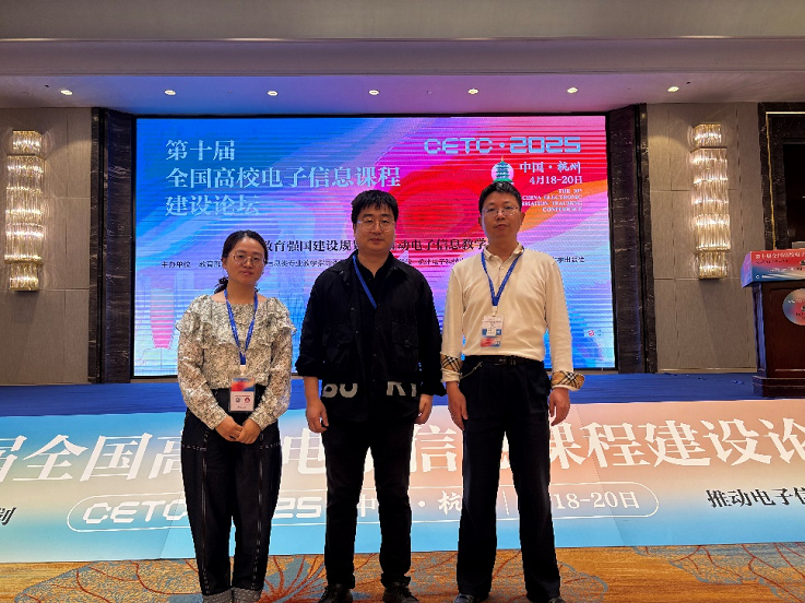 本网讯 2025 年 4 月 18 日至 20 日,由教育部高等学校电子信息类专业教学指导委员会主办,杭州电子科技大学承办,清华大学出版社协办的 “第十届全国高校电子信息课程建设论坛”在杭州隆重召开。电信学院教师颜普、周春和李艳秋受邀参加本次论坛。