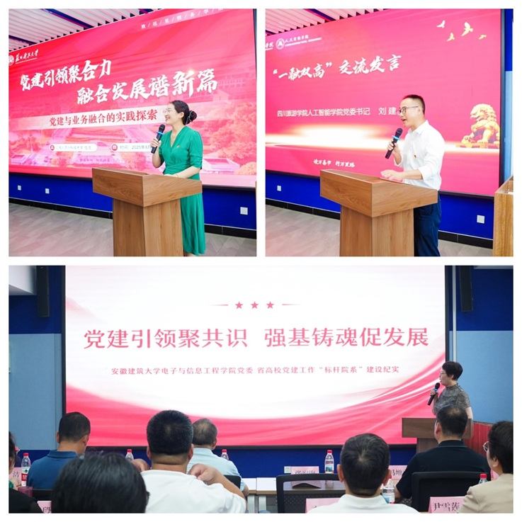 在“一融双高”交流座谈会上,张润梅用详实的工作举措和鲜活的案例,生动展示了省高校党建工作“标杆院系”建设纪实。苏州科技大学电子与信息工程学院党委副书记(主持工作)伯洁分享了党建与业务融合的生动实践探索。四川旅游学院人工智能学院党委书记刘建用详实的数据、鲜活的案例,从“12345政治建设工作法”到“6个通过”品牌矩阵,再到“五育工程”“科研攻关先锋岗”,全面呈现了学院“党建与事业一融双高”的生动实践。随后,与会人员围绕党建与业务深度融合、以高质量党建引领事业高质量发展等议题展开热烈研讨。