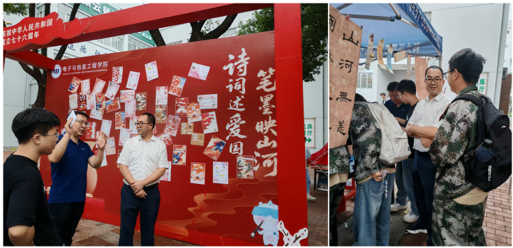 此次“诗词述爱国・笔墨映山河”主题活动,既是电子与信息工程学院深化爱国主义教育的创新实践,也是推动中华优秀传统文化传承的生动探索。通过“沉浸式创作 + 跨文化互动” 的模式,不仅让师生在文化熏陶中强化爱国认同,更让留学生们在亲身参与中感受中华文化的独特魅力,搭建起中外文化交流的桥梁。未来,学院将继续以传统节日、重要纪念日为契机,设计更多兼具思想性与国际性的文化活动,让爱国精神与中华文脉在交流互鉴中薪火相传。(作者:孙晓庄;秦隆阳;一审:杨玲;二审:丁媛媛;三审:张润梅。)