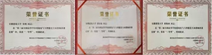 我校电子与信息工程学院高度重视,推选了3名专业教师参赛。竞赛过程中,参赛教师精神饱满,准备充分,教学设计新颖,授课深入浅出、生动活泼,教学内容理论联系实际并融入课程思政,展示了新时代建筑电气与智能化专业教师良好的精神风貌和教学水平。经过激烈角逐,我校电信学院窦艳老师荣获一等奖,张公泉老师荣获二等奖,黄梅初老师荣获三等奖。