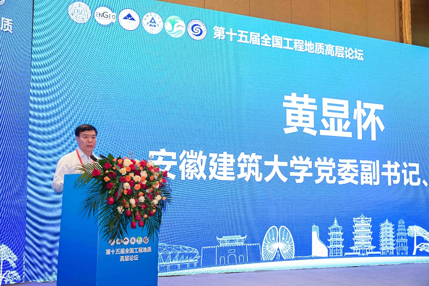 论坛开幕式由安徽建筑大学党委常委、副校长蔡国军教授主持,安徽建筑大学党委副书记、校长黄显怀教授、黄山市人民政府党组成员、副市长戴炜、中国地质学会工程地质专业委员会主任委员、中国地质大学(武汉)唐辉明教授,中国地质学会工程地质专业委员会名誉主任委员、中国科学院院士、长安大学彭建兵教授分别致辞,组委会秘书长、安徽建筑大学土木工程学院执行院长张宁教授汇报了论坛筹备情况。