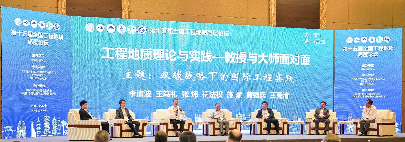 4月25日至28日,第十五届全国工程地质高层论坛在安徽省黄山市成功召开。本次论坛由中国地质学会主办,中国地质学会工程地质专业委员会、安徽建筑大学与黄山市人民政府共同承办,国家自然科学基金委员会与中国科学院地质与地球物理研究所协办。长安大学彭建兵院士、宁波大学杜时贵院士、中国地质学会工程地质专业委员会主任委员唐辉明教授,以及工程地质专业委员会副主任委员、国家勘察设计大师、国家高层次人才等150余特邀专家出席了本次论坛。论坛主题为:“双碳”战略下工程地质使命与发展,分别由大会报告、专题研讨、野外地质考察等三大部分组成。